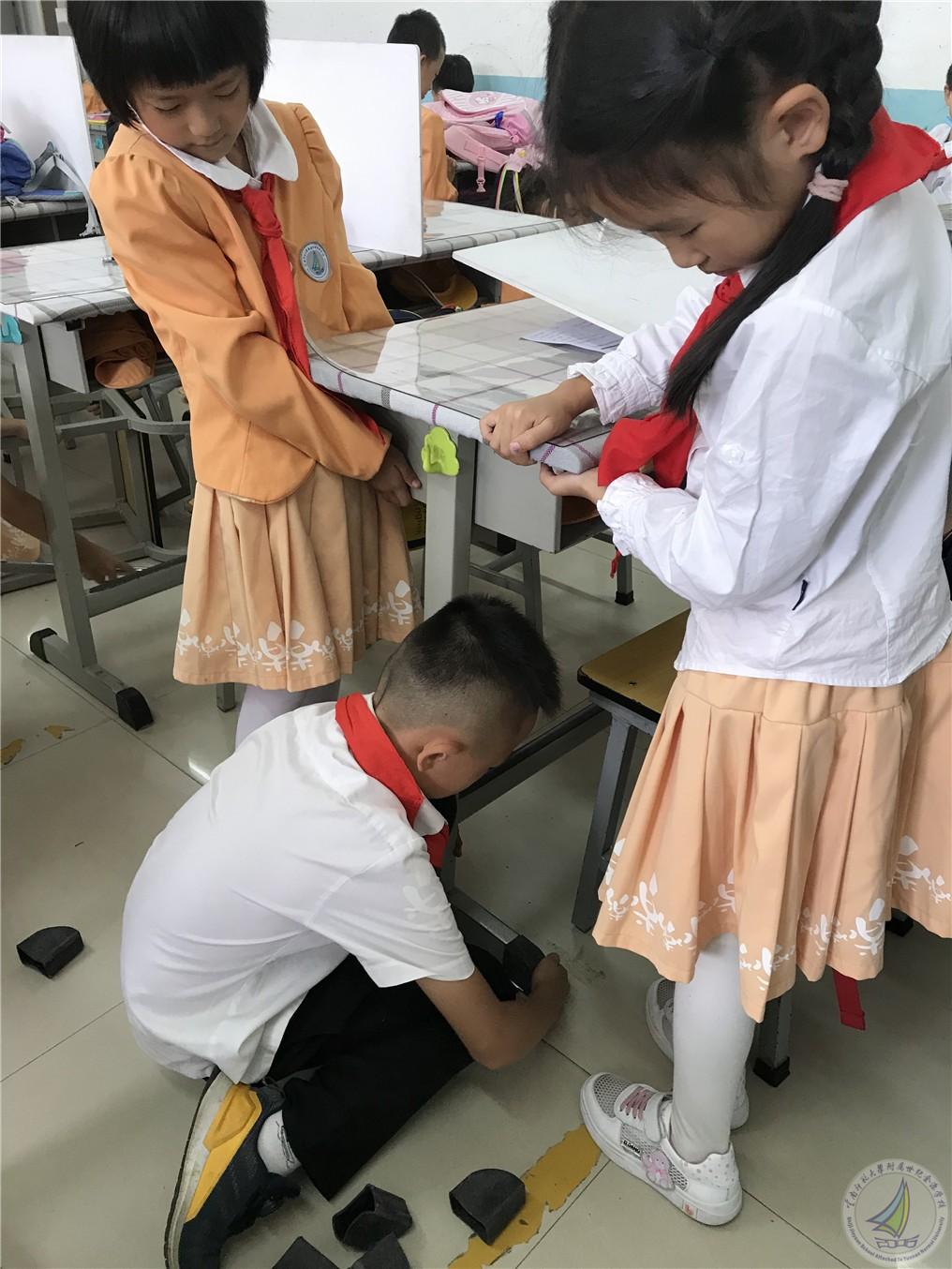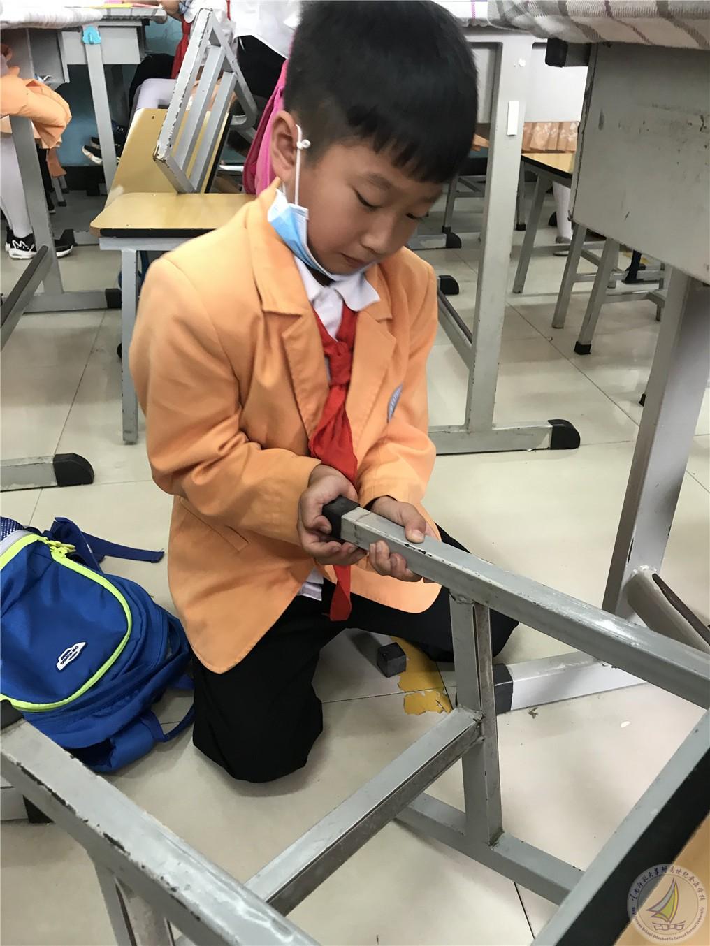 为了增强孩子们爱护公物的责任意识,培养爱护公物的自觉习惯,9月4日金源小学二(3)班的孩子开展了“爱护公物,争当文明小学生”主题班队课!课桌椅陪伴学生们学习多年,但有的同学不仅不爱护它们,而且还伤害它们,把它们的脸划的伤痕累累,有时还坐在上面东摇西晃呢。于是老师从什么是公物、为什么爱护公物、如何爱护公物三个方面为切入点,结合实物桌椅板凳来进行讲述,让桌椅板凳成为有生命的故事主角。一个个被伤害,留下终身残疾的桌椅小故事就出炉了。然后号召大家爱护它们。从给缺脚套的桌椅开始,为他们“疗伤治病”。更换桌椅脚套开始了,每个小队领到自己需要的脚套数量。有的小朋友迫不及待地自己抬起椅子脚,认真安装。有的几个人合作,两个人抬桌子,一个人赶紧抓紧时间蹲到桌子下面去安装。看着换好的桌椅稳稳当当地放在教室里。孩子们都笑了。原来桌椅受了这么多年的委屈,这下总把它们心中的怒火全部扑灭了。我们用这喜悦的汗水换来桌椅的一身健康是值得的,我们一定要爱护桌椅!