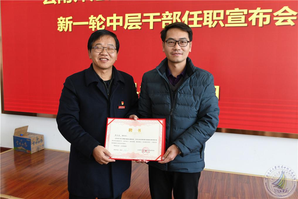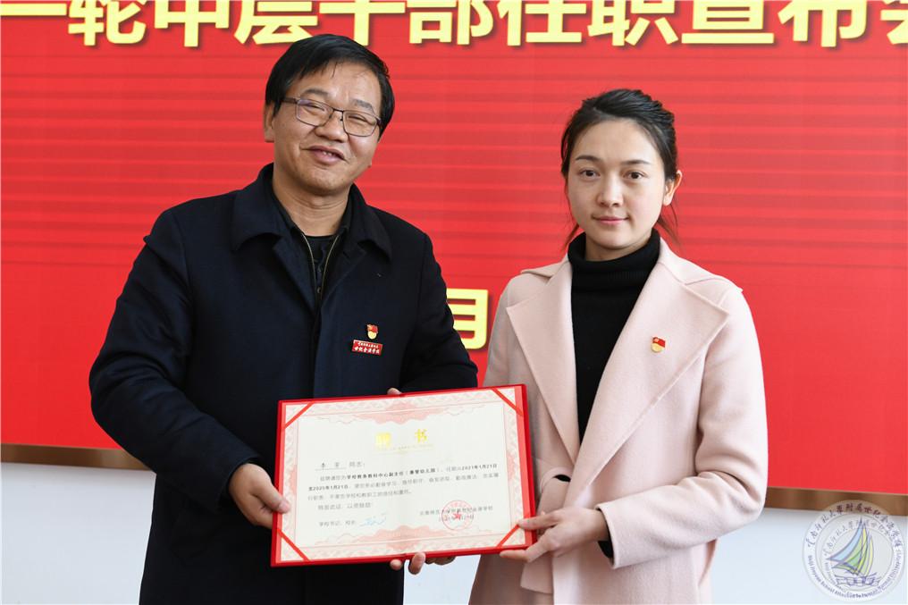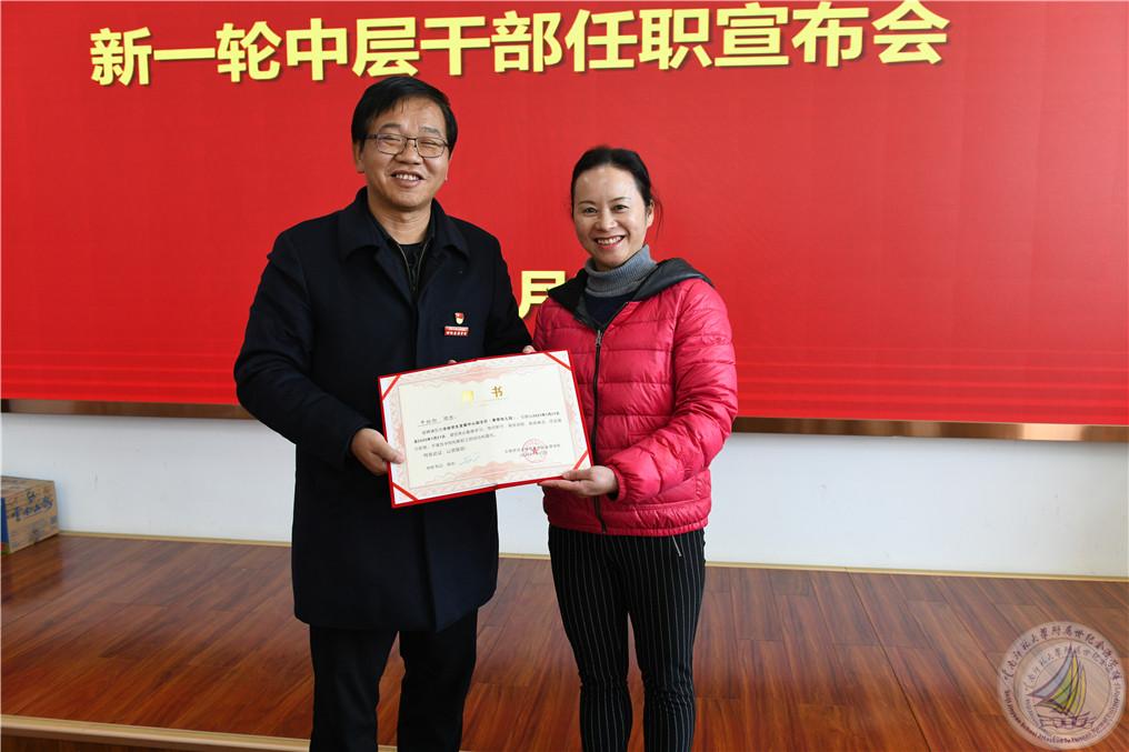 许全友副书记宣读了学校新一轮中层干部的任职情况。学校新一轮中层干部任命共涉及34个岗位和29名干部(含兼职),此次任命的中层干部试用期一年,任期四年。