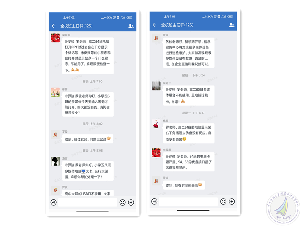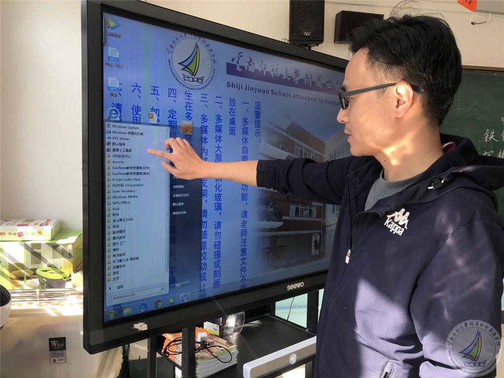 教室多媒体是学校教师进行现代化课堂教学的重要设备,各位任课教师和学生均有管理、爱护的责任和义务。为了保证全校多媒体教学秩序的正常运行,提高教室多媒体设备的利用率,3月1日开学后,信息宣传中心对全校各班级开展多媒体设备巡检专项工作,根据老师们报备维修的申请,罗骏老师及时对幼儿园、小学、中学申请维修的班级排查故障进行维修。
