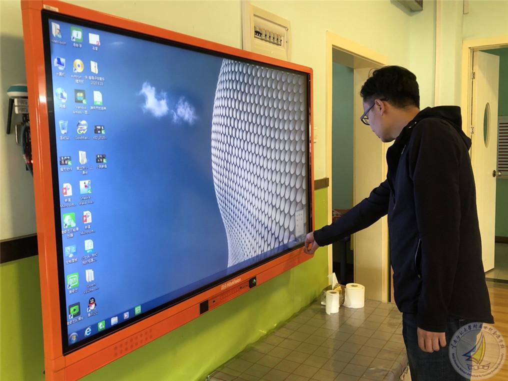 信息宣传中心人员在幼儿园班级检查多媒体设备