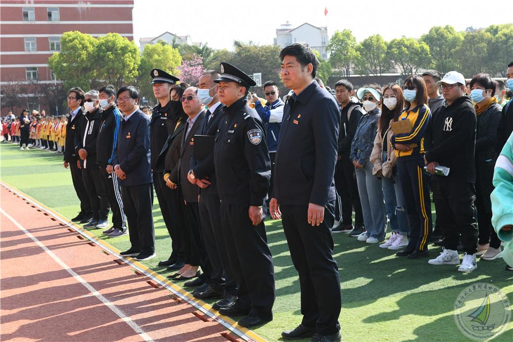 接着昆明市公安局官渡分局党委委员、政工室王汝明主任发表讲话。王主任提到,根据《昆明市公安局关于贯彻落实云南省公安机关维护校园安全十项工作措施的实施意见》,要求每位分局领导班子成员要逐一确定挂钩联系学校,并到校开展新学期平安校园宣传周“四个一”活动(举行一场平安校园安全宣传活动启动仪式、公安局长当一天“护学民警”活动、组织一场法治宣传教育活动、组织一次应急处置演练活动),开展校园内部安全防范督导检查,进一步提高挂钩联系学校整体安全防范水平。