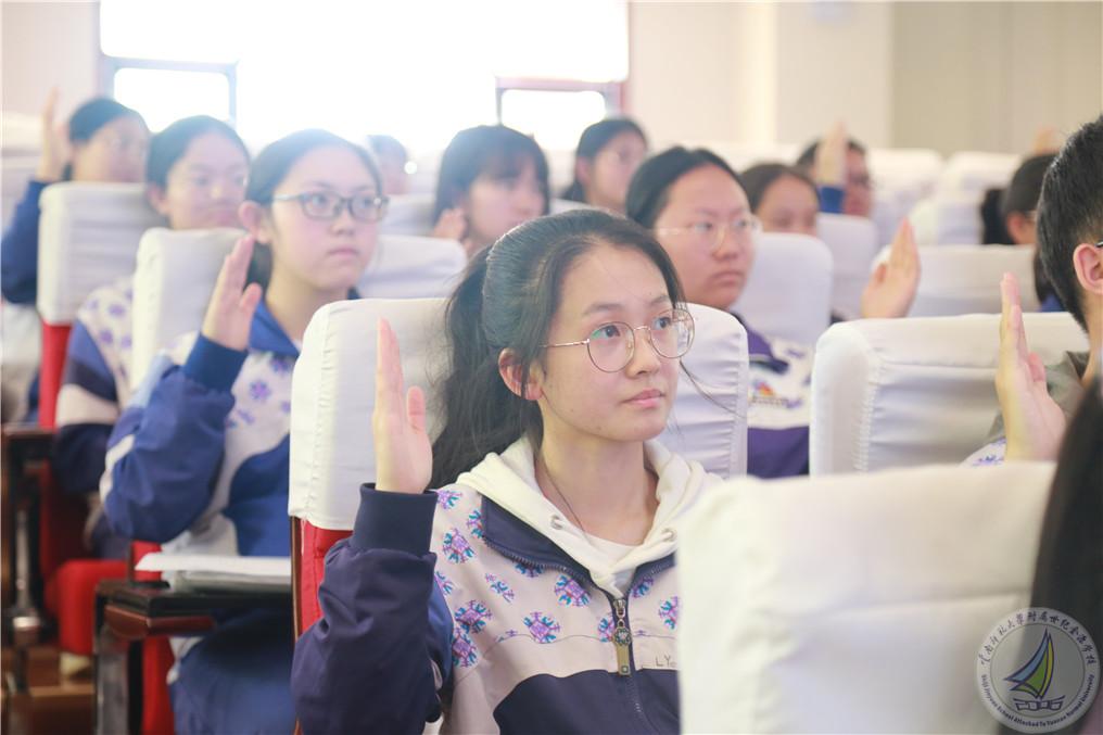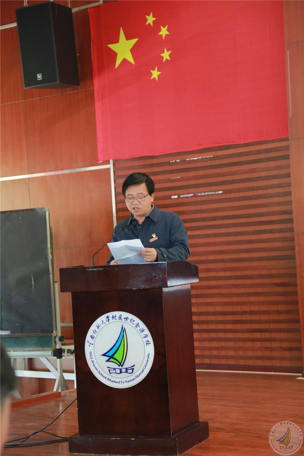 马永文书记、校长向全体共青团员致辞,要不忘初心、牢记使命,认真学习贯彻党的十九大精神,紧紧围绕学校高质量发展的目标,建一流共青团,成为学校的得力助手和后备军,为学校的改革建设发展振兴贡献青春力量,新一届团委和学校各级团组织要为党委争优,为学校担当!试看今后的十年、二十年、三十年,中华之变化、世纪金源学校之变化,每一位团员都是建设者、参与者,需今天为之准备、努力,马书记、校长勉励全体团员牢记习近平总书记嘱托,坚定理想信念,在党委领导下,以永不懈怠的精神态度和一往无前的奋斗姿态把学校团委工作不断推向新里程!