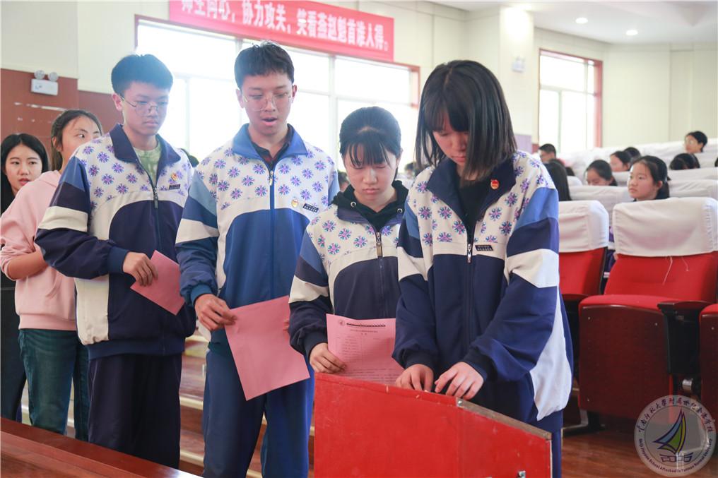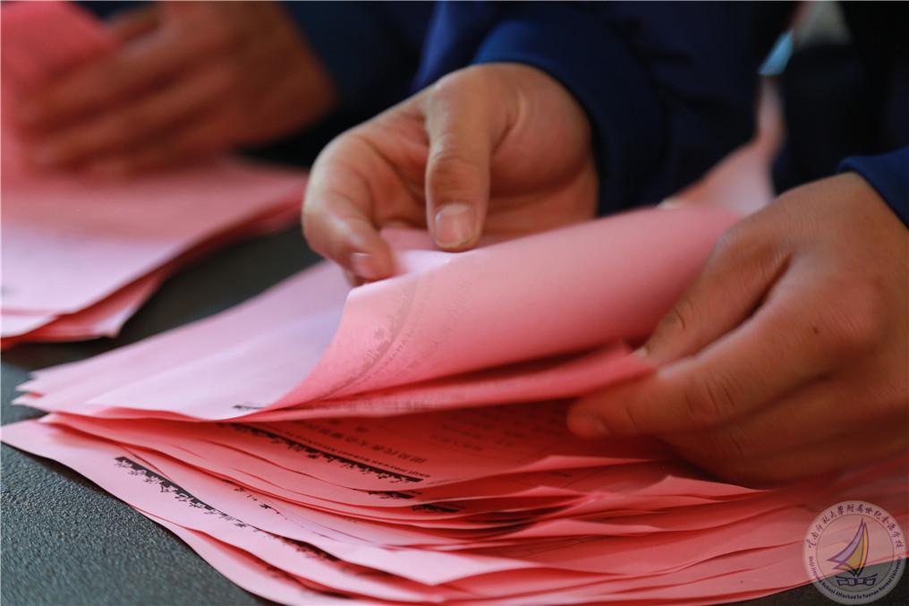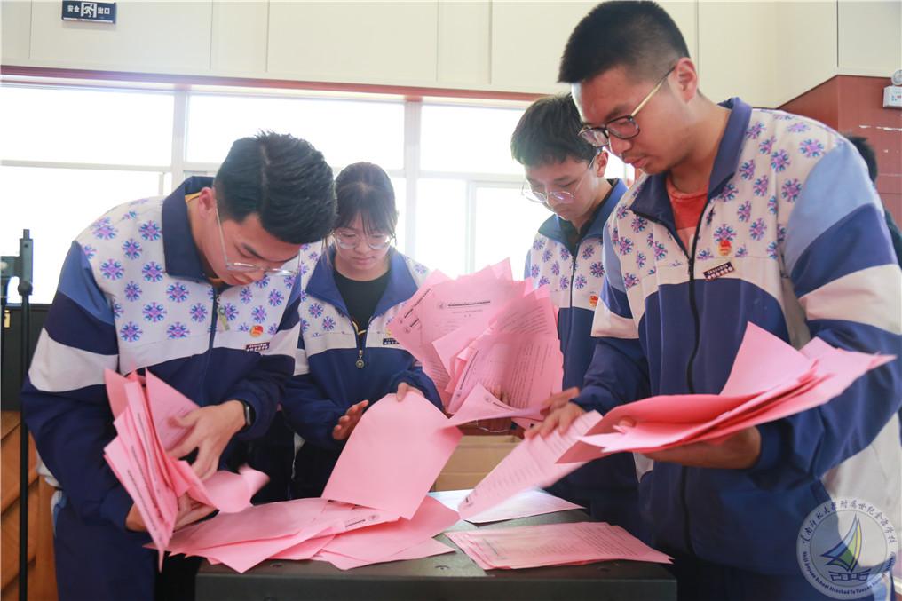 团委书记杨春盛同志对换届选举办法和候选人名单进行了公布。党办副主任陈久毅同志、教师代表宋欣盈、陈秋如同志监票和计票。大会设立了投票箱,以不记名投票差额选举方式进行选举。 监票人和计票人各司其职,严格按《选举办法》进行详实的票数统计。秉承公正、公平、公开原则,各位团员经过深思熟虑投下了自己神圣的一票,最终选举出肖菲为新一届团支部书记,卢雄伟为新一届团支部副书记,赵一凡等同学为新一届委员。
