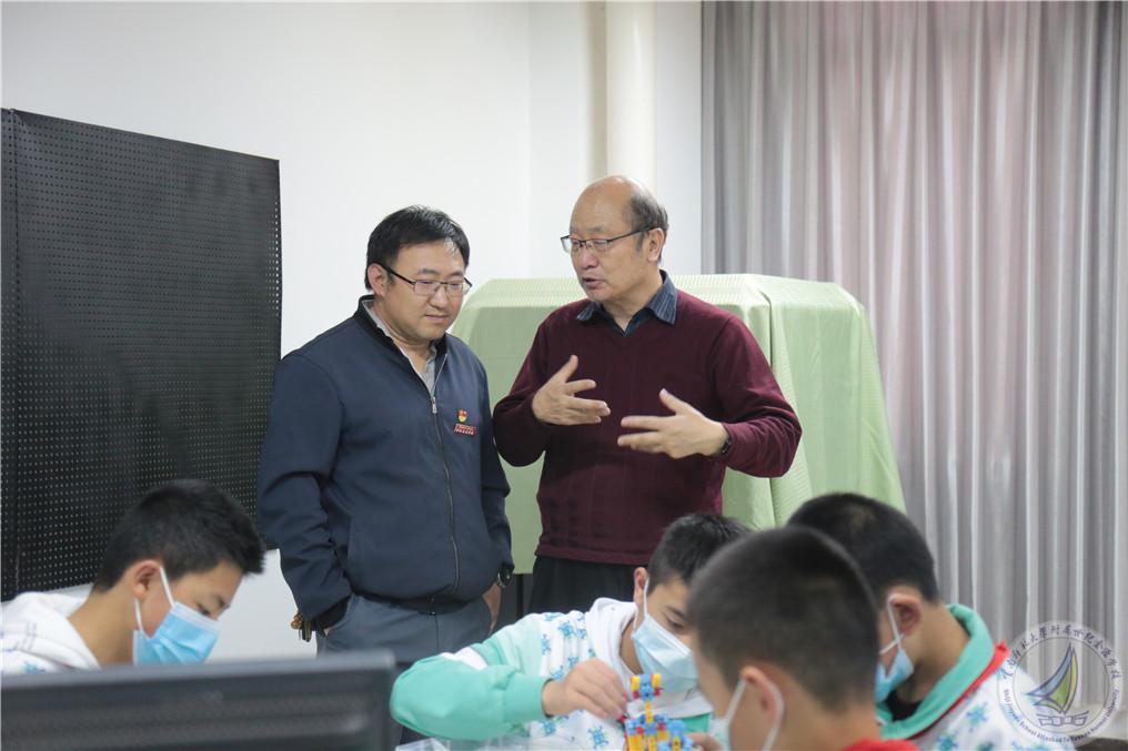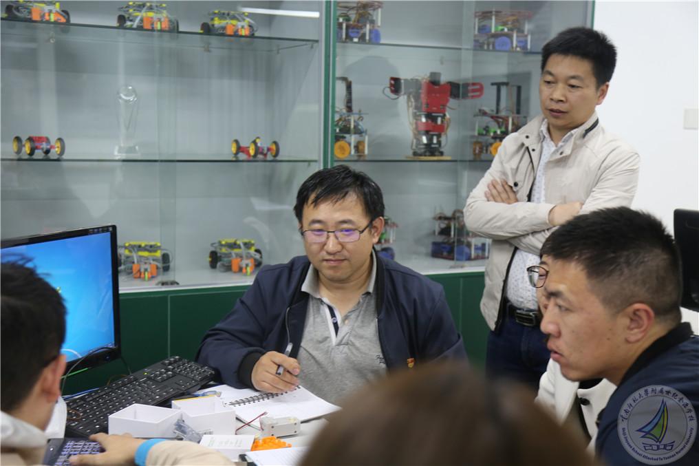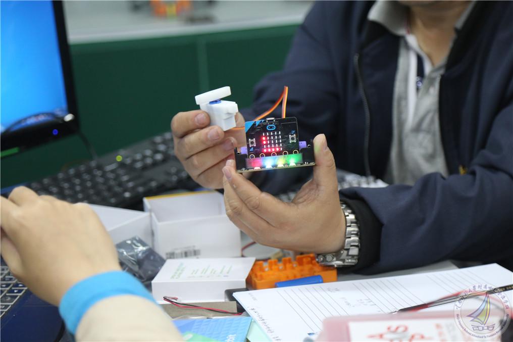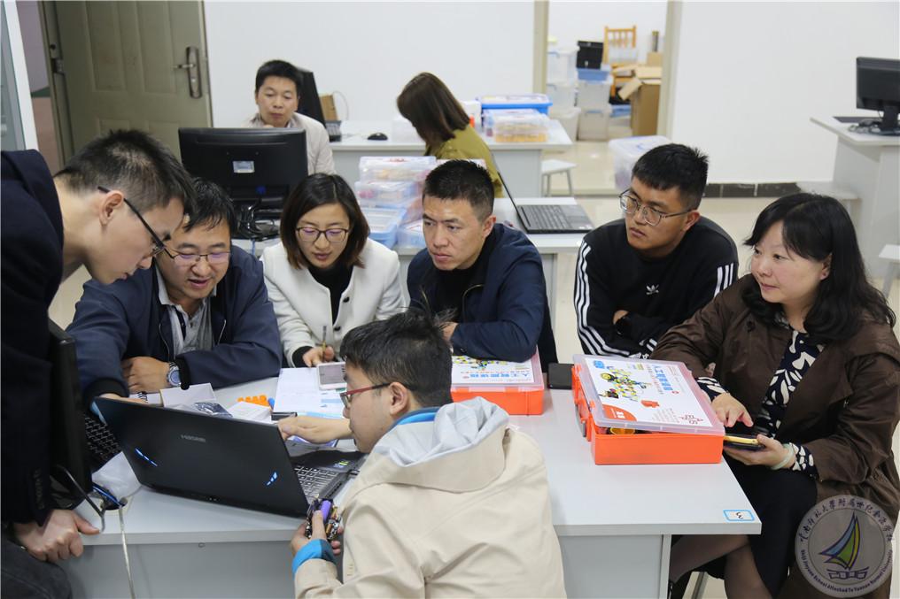晚上7点,梁俊、赵思捷、范晶婷老师在教室里进行教研,梁博士与同行的老师给予大力的支持与指导,从教学方法到硬件搭建,从课程理念到编程测试,无不显示出这支精锐专业的团队的前瞻未来性、创新实践性!