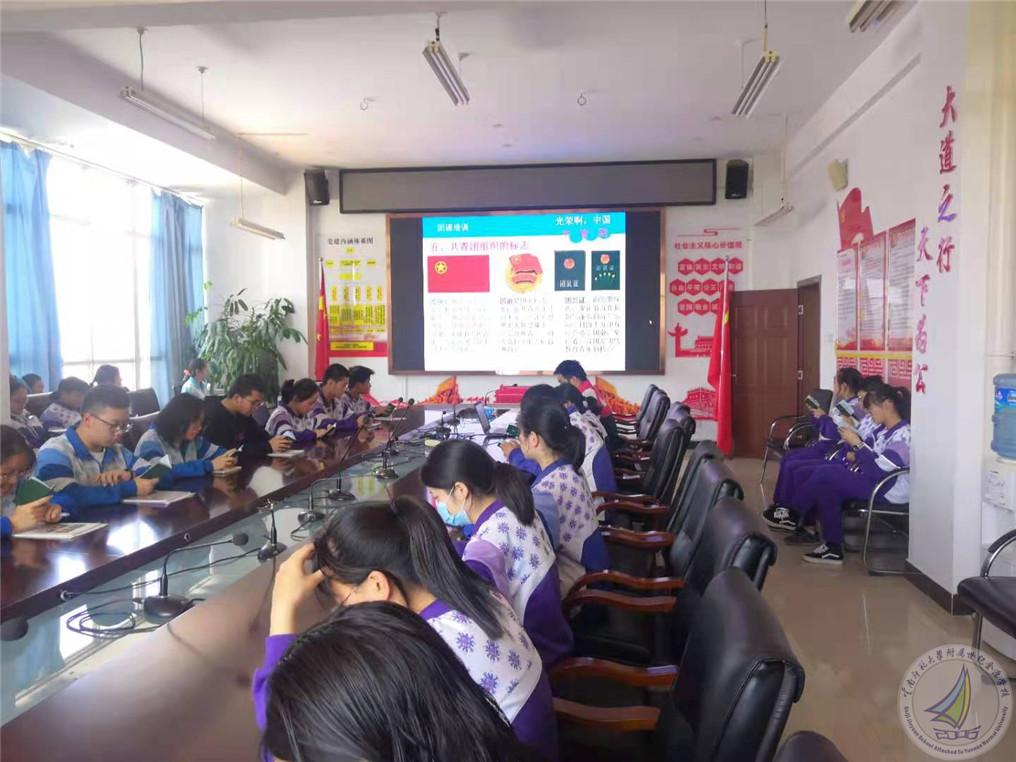为进一步充实学校共青团队伍,增强共青团凝聚力、战斗力,吸收政治思想好、学习努力刻苦、积极要求上进的同学加入团组织,加强我校入团积极分子对团组织的深刻认识,提高他们的政治思想素养,4月29日中午,校团委开展了2021年4月份第三期入团积极分子团课培训——《学习团的章程,争做合格团员》。培训在四楼会议室进行,65名入团积极分子参加,由校团委书记肖菲老师、副书记卢雄伟老师主持培训,卢老师带领大家认真学习了团章中的重点内容。本次课程内容包括团员的权利和义务,团旗、团徽的意义和团的纪律等。