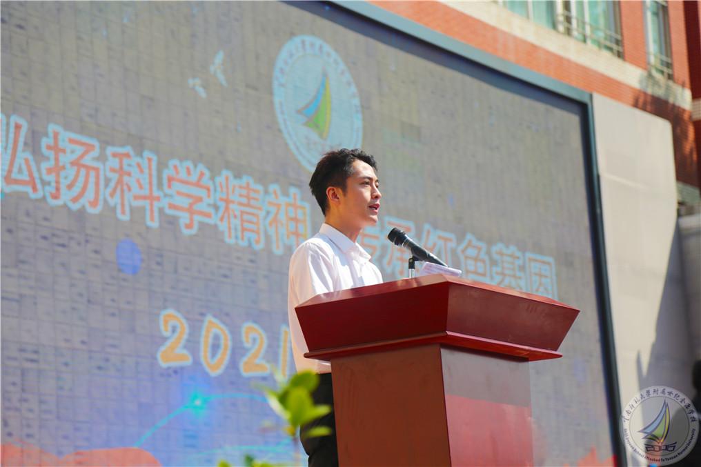 开幕式上,鲍学良副校长代表学校致开幕词,热情洋溢的致词,拉开本届科技节的序幕。鲍副校长指出主题“弘扬科技精神 传承红色基因”与学校“规范+特色”“合格+特长”的办学、育人理念一脉相承,希望同学们开启智慧、探索科学奥妙,同时加强校园爱国主义和党史学习教育,感念党恩,争做时代新人!
