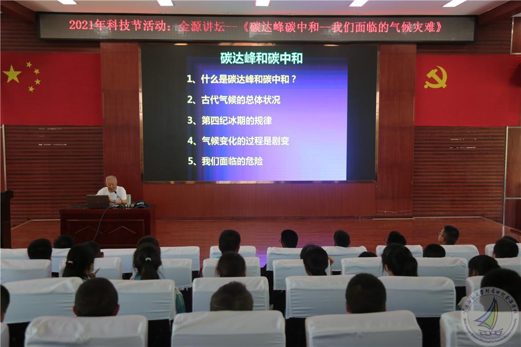 气候变化是人类面临的全球性问题,随着各国二氧化碳排放增加,人类的未来发展受到了巨大威胁。在此背景下,碳达峰、碳中和在今年被首次写入政府工作报告,成为社会各界热议的话题。为进一步引导青少年学生关注气候变化问题,提高科学素养,培养科学精神,提升他们参与碳减排,主动顺应全球绿色低碳发展潮流的能力,官渡区走进“生物圈”,守护 “蓝色星球”生物多样性科普活动巡展特走入我校2021年科技节活动,举办题为《碳达峰碳中和——我们面临的气候灾难》的专题讲座。