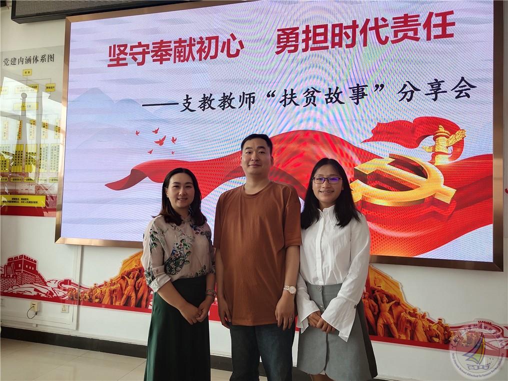 分享经历,温暖人心,坚定初心,激励青年。5月21日中午,我校支教教师方利芬、梅芳、朱宝宝与学校青年教师代表及学生干部代表分享了他们的支教经历,鲍学良副校长参加了分享会。习近平总书记说“时间之河川流不息,每一代青年都有自己的际遇和机缘,都要在自己所处时代的条件下谋划人生、创造历史。”在迪庆州脱贫攻坚的大背景下,他们像草原上的一株草,天空中的一片云一样普通,书写着支教老师平凡的故事。
