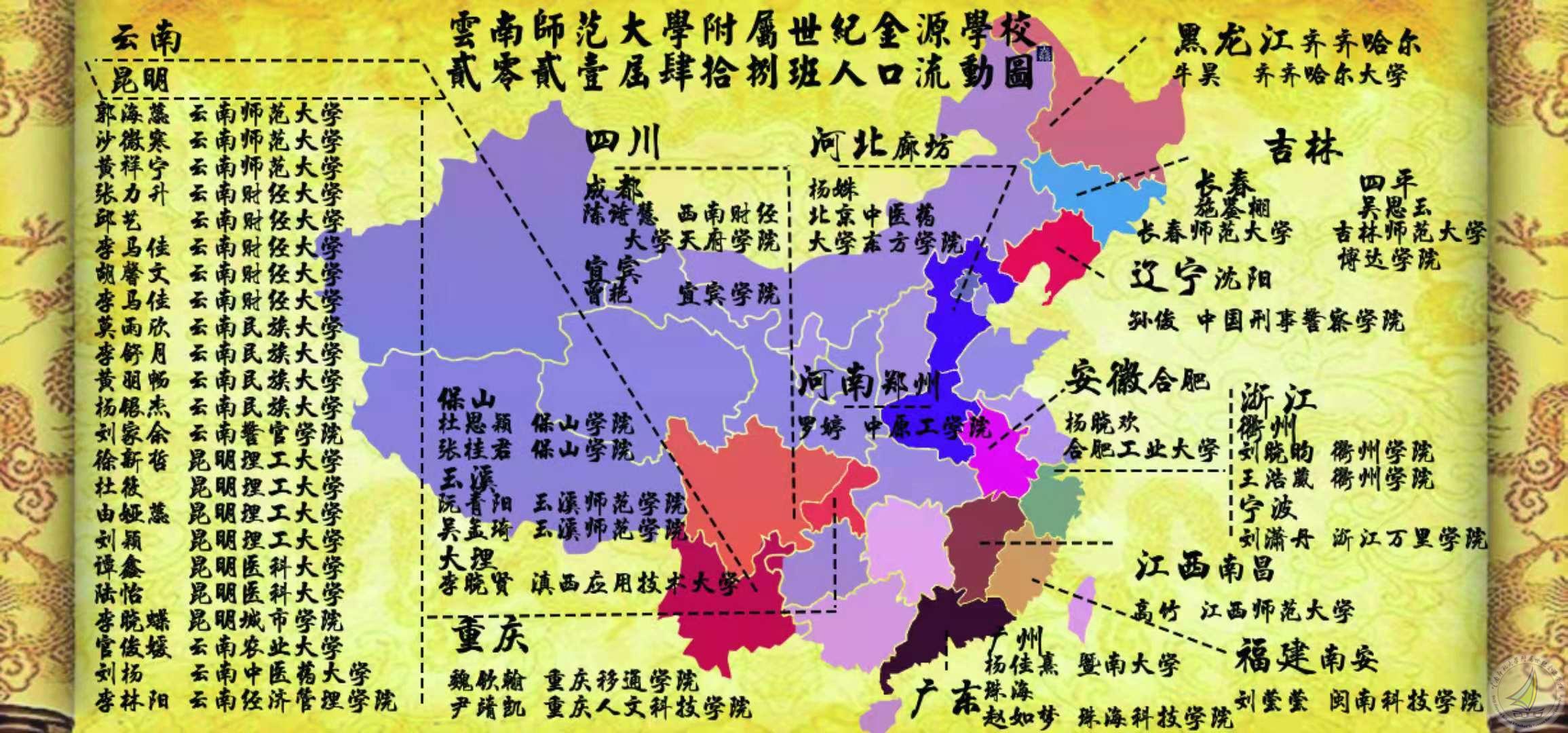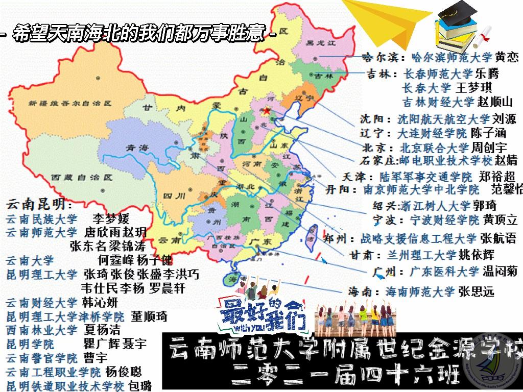 随着大学录取通知书的到来,同学们即将天各一方,毕业后如何保持联系?高三年级各个班级都绘制了自己班级的“毕业去向图”,“毕业去向图”上标明了班上各位同学的毕业去向,别名“蹭饭地图”。