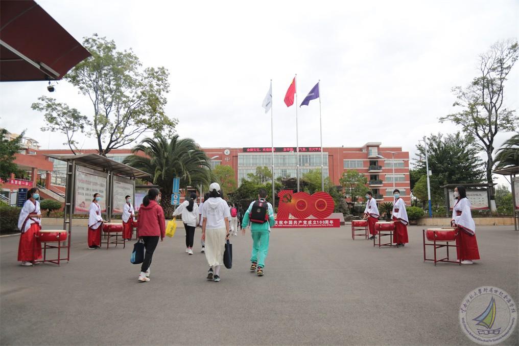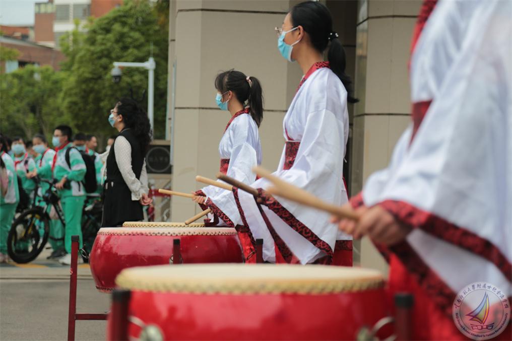 早上8:30,我校崔汝坤副校长、学生发展中心陈国栋主任、卢雄伟、马蔚副主任、中学段陈剑屛副主任在学校门欢迎初一新生第一走进校园,张淑老师带领的小鼓手热烈地敲鼓迎接金源宝宝!