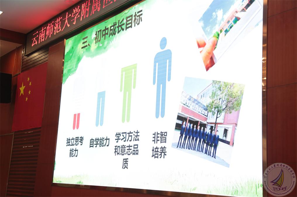 中学段陈剑屛副主任为金源宝宝介绍了世纪金源学校的校园环境、教师团队、取得成绩、金源宝宝们的日常学习与作息,从多角度让初一的金源宝宝了解即将面对的新生活的模样,多一分了解,多一分期待,早一分融入,是深情地款待这份遇见,也是寄于今后的学习祝福!