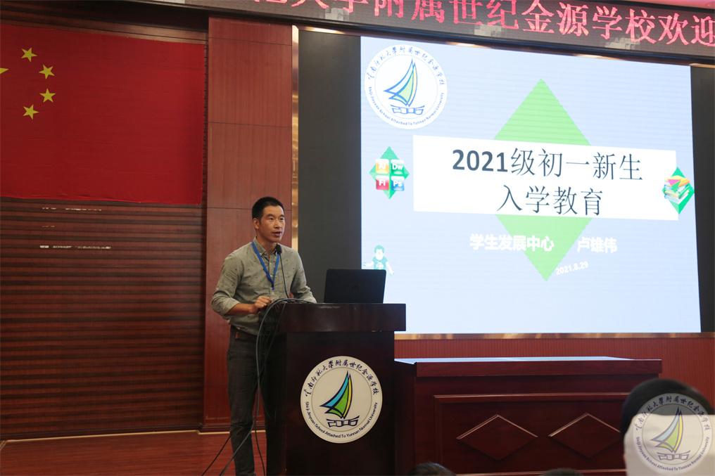 学生发展中心副主任卢雄伟老师围绕仪容仪表、日常管理等问题作了简要的介绍,着重强调了学生行为习惯的养成。希望新同学们能养成良好的行为习惯,迎接挑战;转变角色,重新定位;明确目标,规划人生,珍惜美好的初中生活。