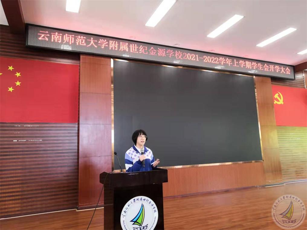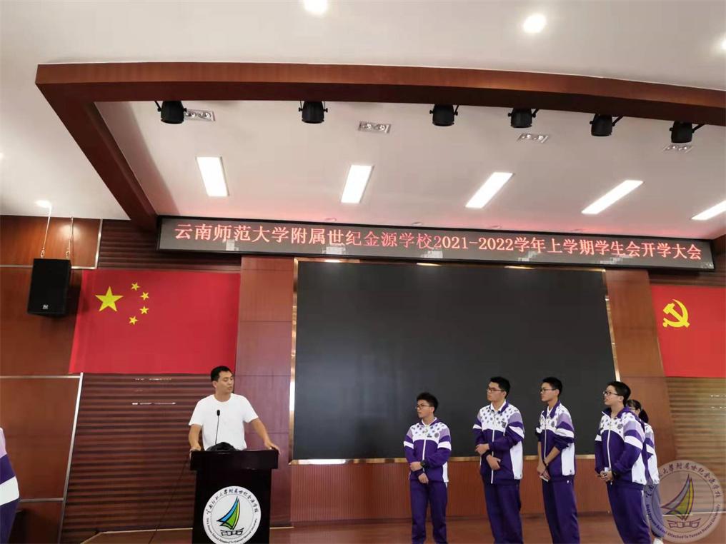 云南师范大学附属世纪金源学校团委学生会开学大会暨新成员动员大会在学校报告厅召开。会议由校团委肖菲老师主持,学生发展中心陈国栋老师、学生会主席、副主席、各部部长及90余名学生会新成员参加了此次会议。本次会议目的主要是开学学生会工作调整安排及欢迎各个部门新成员,让成员相互了解,促进团结合作能力。让新成员了解什么是学生会,怎样做好自己的工作。同时激发各部门成员的工作热情,营造良好的学生会活动工作氛围,调动大家的积极性。此次大会是学生会新成员对学生会全面深入了解的第一步,也是新生们融入这个大家庭的第一步。