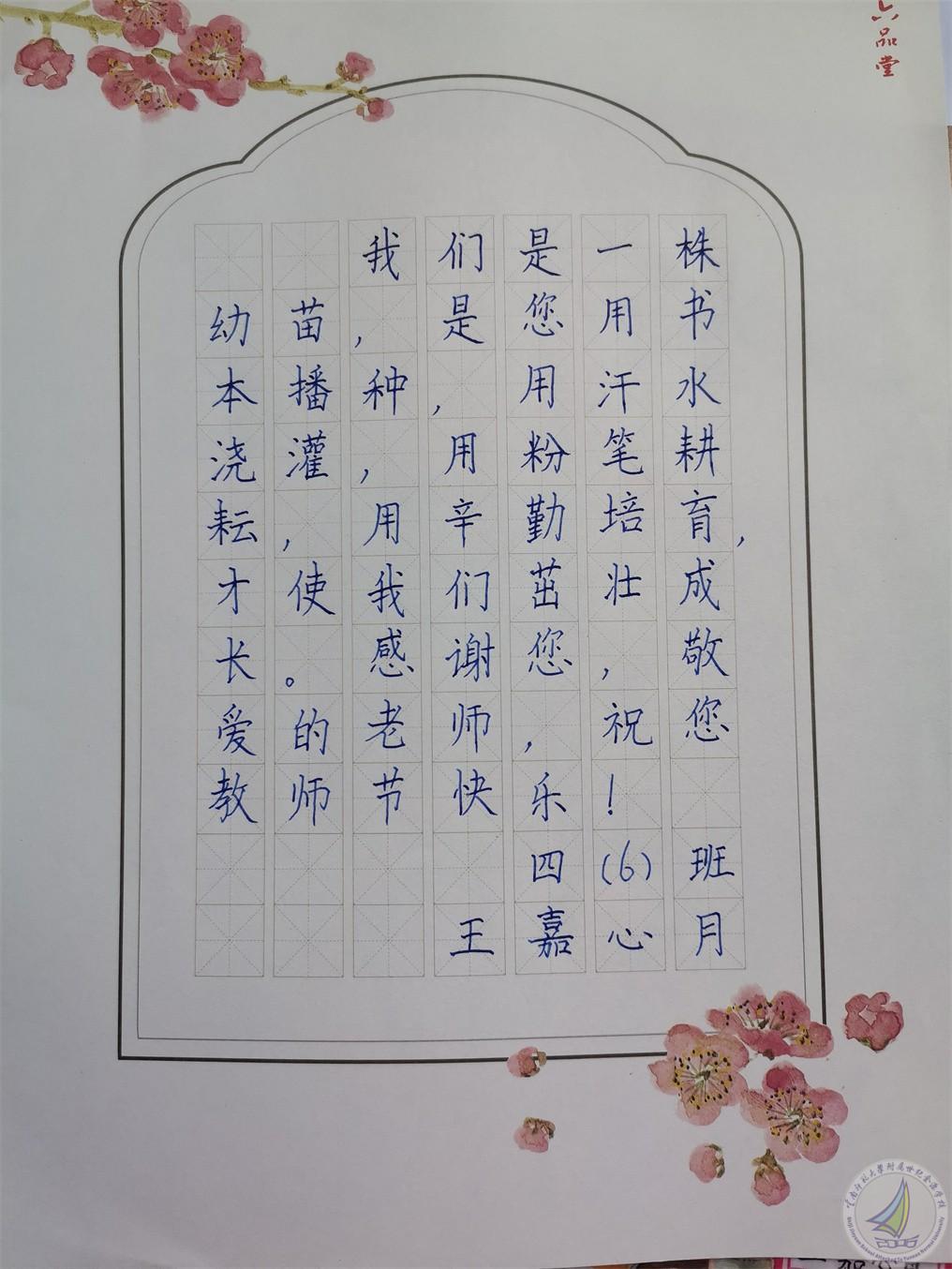 中学段的金源宝宝在一字一画中对老师有怎样的祝福?