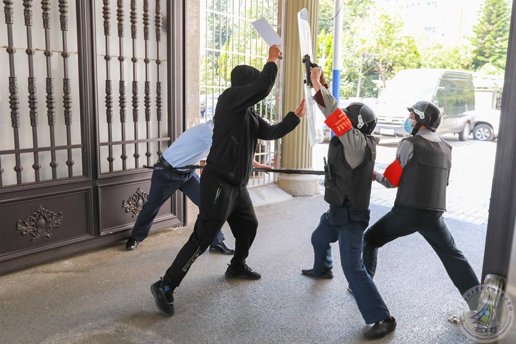 为贯彻落实上级关于校园安全工作相关要求,做好国庆、COP15期间校园安全稳定,确实维护师生生命安全。2021年9月30日上午学校举行反恐处突应急演练,学校马永文书记、校长,法治副校长、世纪城派出所副所长罗瑞海,渠志春副校长、鲍学良副校长,学校后勤保障中心等相关领导、部门出席了此次活动。