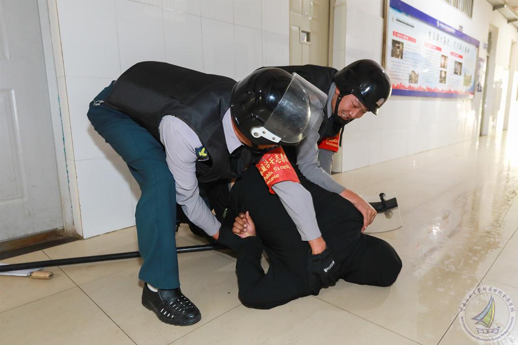 演练背景、程序:2021年9月30日下午13时,全校师生在进行午休,3名犯罪分子对社会不满,利用教师进校等空隙,意图从小学大门及学校机动车通道同时闯入学校对师生进行人身伤害以图报复社会。学校迅速启动应急预案,保安队员在老师和警察的帮助下,制服犯罪分子,确保师生受伤害程度控制到最低限度。