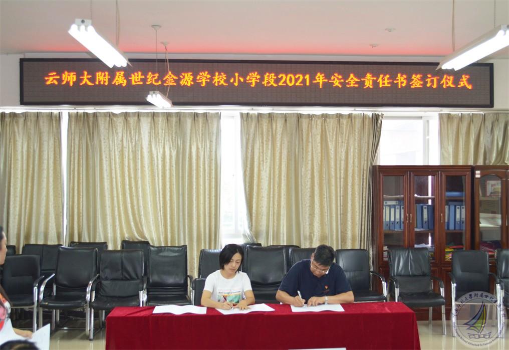 新学期伊始,为不断强化校园安全管理,提高广大师生的安全意识和自我保护能力,预防和减少校园安全事件发生,根据学校安全工作的统一安排,建立校园安全管理网络体系,为校园安全筑起更加坚实的屏障。9月30日下午,小学段在小学二楼会议室举行了2021年《安全责任书》签订仪式。