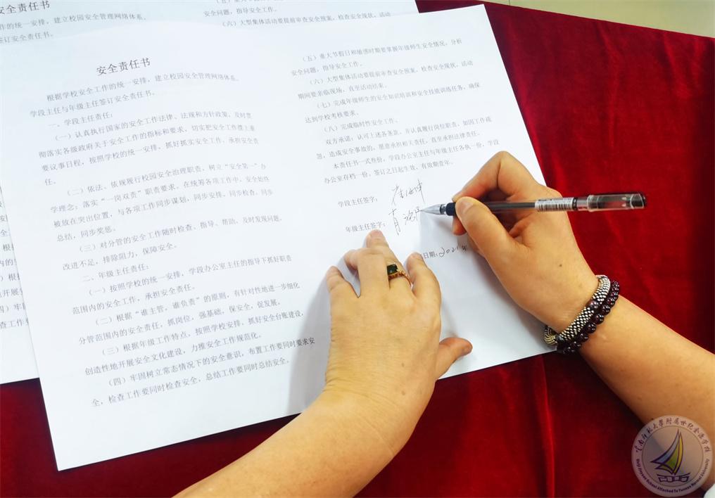 安全无小事,在我们生活的每一个角落里,都潜伏着许多不安全的因素,生命是宝贵的,同时也是脆弱的。安全是生命的前提,安全无小事,作为孩子的守护者,教师更要时刻把安全记心间。签订《安全责任书》后,老师们明确了各自的安全责任,并承诺认真履行岗位职责,做好自己的本职工作,排出校园安全隐患。