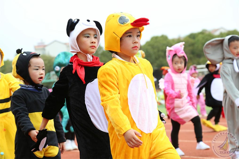 幼儿园方阵的小朋友今天变成各种小动物,喜气洋洋的走来,幼儿园的老师们趁此盛会将“共建生命共同体”这一共同愿景和目标植入金源宝宝的心中。