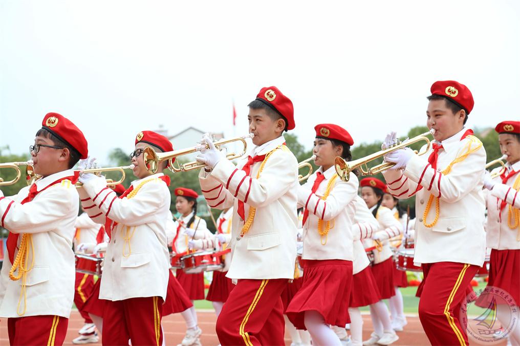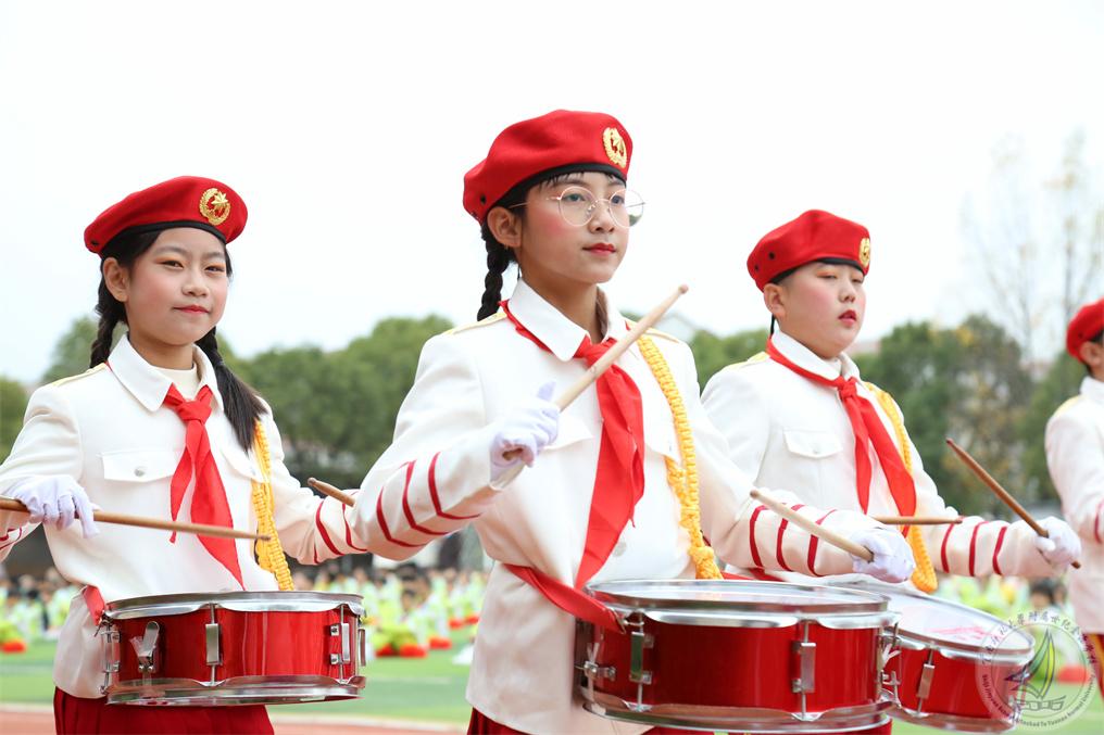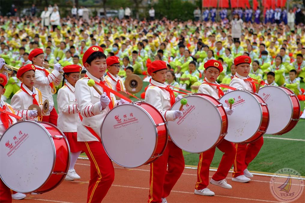 战场上的鼓号声振奋人心,鼓号队的少先队员们伴着铿锵有力的鼓点,昂首阔步进入运动场,红领巾们在新时代的鼓号声中,集结在星星火炬的旗帜下,立志争做锐意进取、蓬勃向上的新时代好队员。