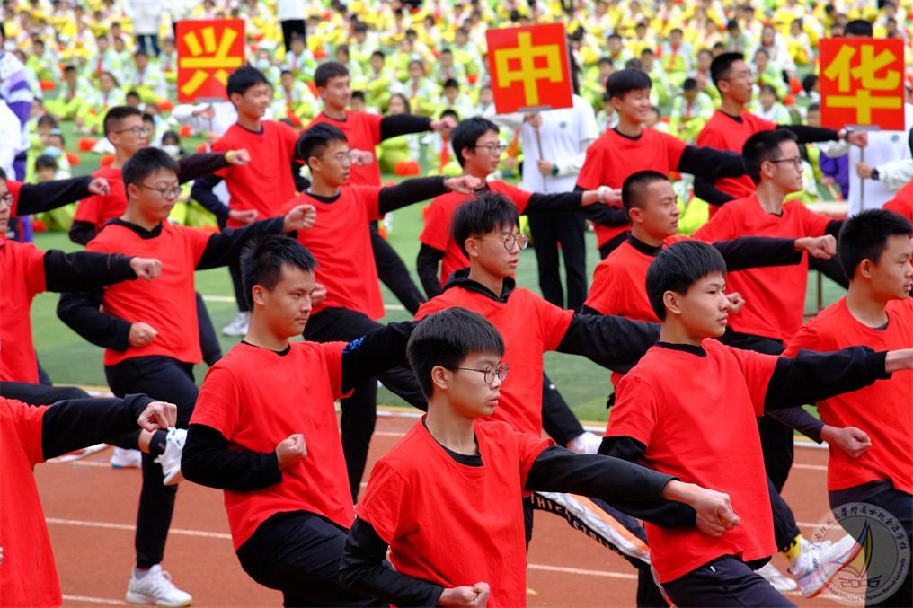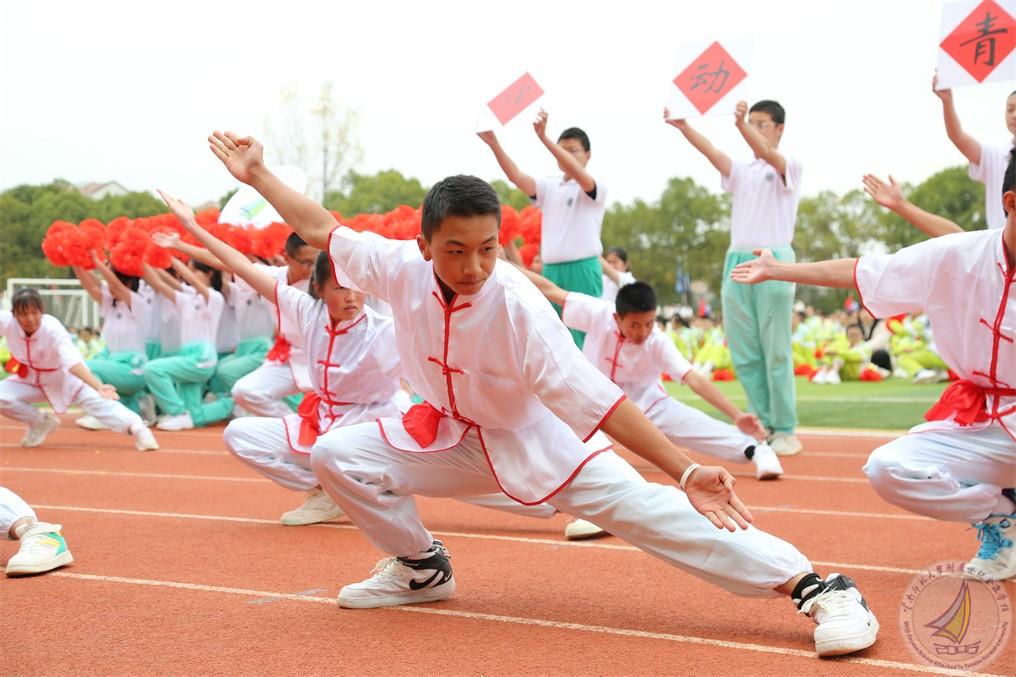 武术是中华民族传统文化的瑰宝,初二年级方阵的金源少年们如雏鹰展翅,热情奔放,似猛虎下山,虎虎生威,如凌波踏浪,又似蛟龙出水,谱写出刚柔并济,海纳百川,胸怀天地的中华武术魂!