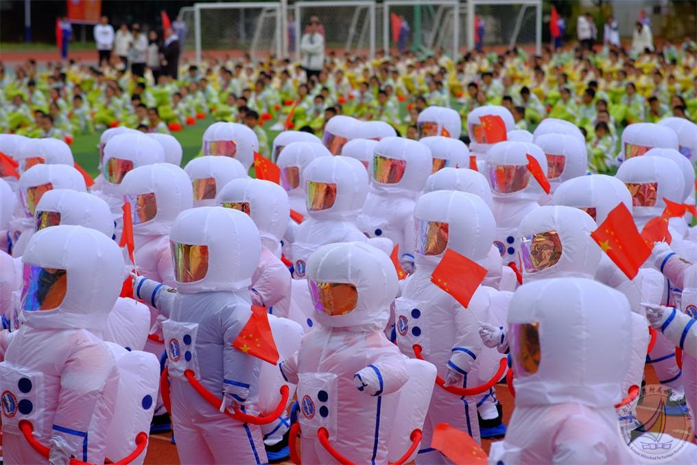一年级这群可爱的小朋友第一次作为小学生参加运动会,他们的步伐稚气,但稚气中透着勇敢。小小宇航员,致敬中国航天梦,这才是祖国花朵们应追求的理想!为他们点赞!