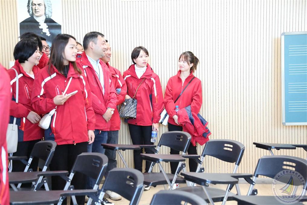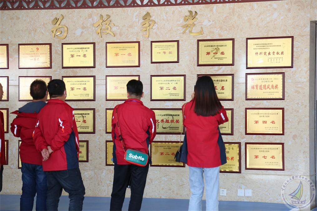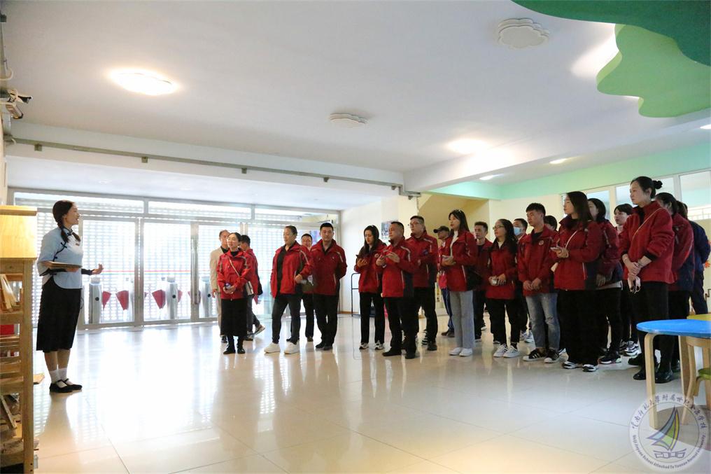 到访的校长们在我校行政办公室副主任王杰的带领下走进幼儿园、小学段和中学段,以及学校的特色文化建设。
