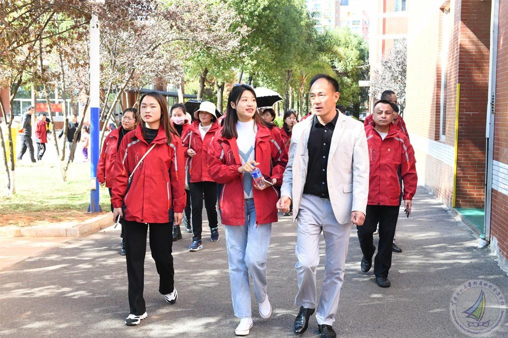 2021年11月11日下午,我校马永文书记、校长,许全友副书记,崔汝坤副校长,渠志春副校长,学生五大中心主任和副主任接待来自云南省“万名校长培训计划”第六期D113班,以我校简文武副校长为支部书记的临时党支部一行50多人的到访参观,其项目办公室综合部的彭波主任和沈修香老师一同随行参观。此行到访旨在了解我校十五年一贯制办学模式,以及“规范+特色”、“合格+特长”的办学目标与思想。