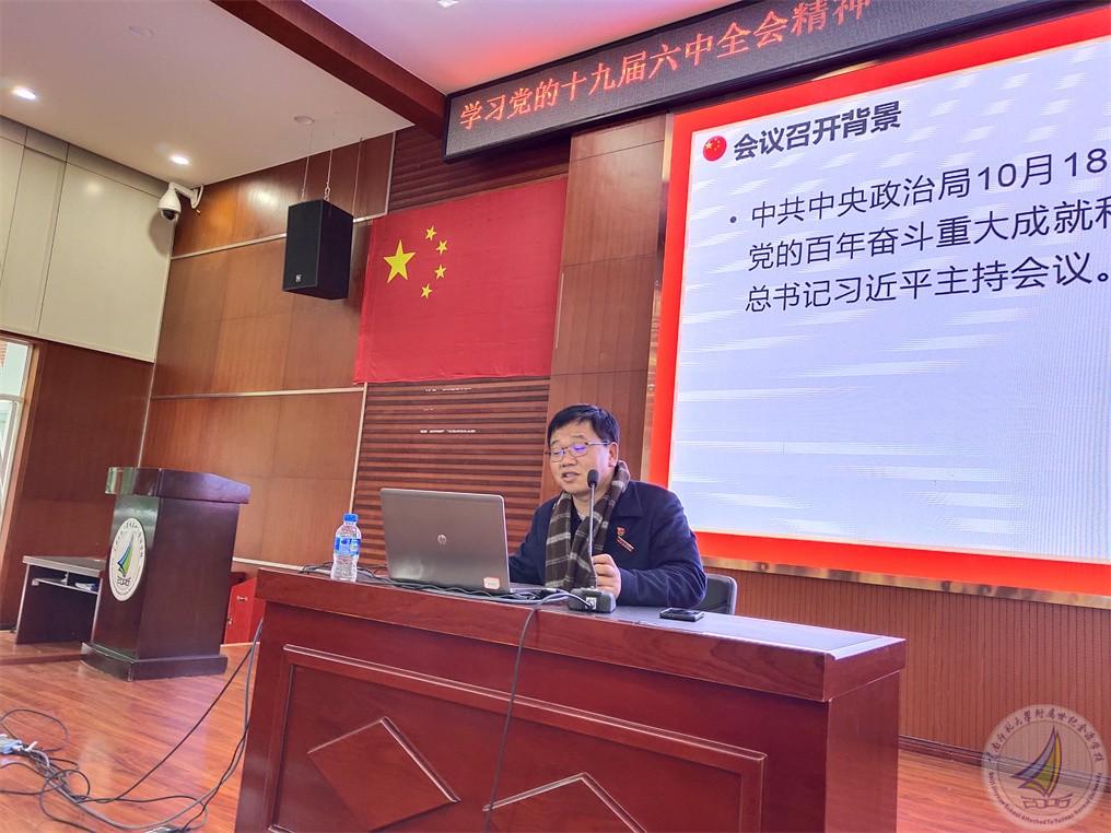 马书记、校长从会议的召开背景、重要意义、主要议程、学习十九届六中全会精神需要搞清楚的要点等方面带领大家学习了十九届六中全会精神。并重点提出了几点期望:一是希望同学们能读一读马克思主义原著,尤其是《共产党宣言》,并学习好中国共产党党史;二是要树立正确的人生观、世界观、价值观;三是要坚决抵制消极、悲观的思想,不躺平也不内卷,做一个积极的奋斗者;四是勇于把责任担在肩上,在下一个一百年奋斗历程中有所贡献。