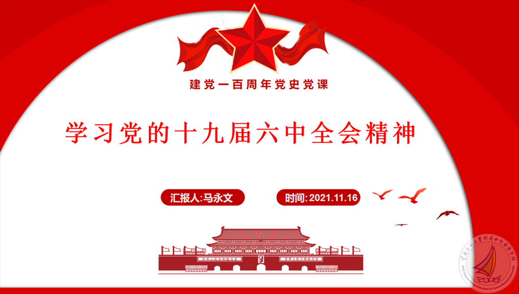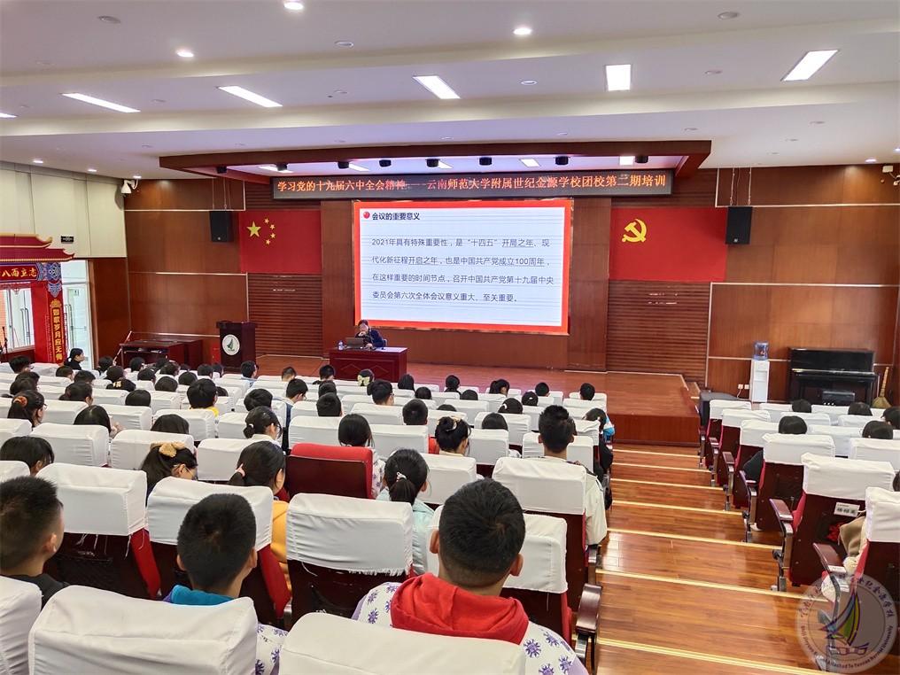 中国共产党第十九届中央委员会第六次全体会议于11月8日至11月11日在北京胜利召开,这是在庆祝中国共产党百年华诞的热烈氛围中,在“两个一百年”奋斗目标的历史交汇期,中国共产党迎来又一次意义重大的盛会。党旗所指,团旗所向。我们要把学习贯彻党的十九届六中全会精神作为当前和今后一段时间内政治思想学习的首要任务,让“请党放心,强国有我”成为新时代青少年的共同使命。马永文书记、校长于11月16日带领我校团员师生学习党的十九届六中全会精神,学校党委许全友副书记参加了此次培训。