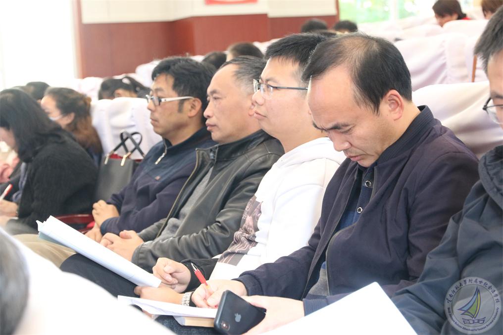肖勤主任对教研组长的发言和课赛情况做交流,他说檐牙的花枝最好看,也说每一位认真的老师最美。