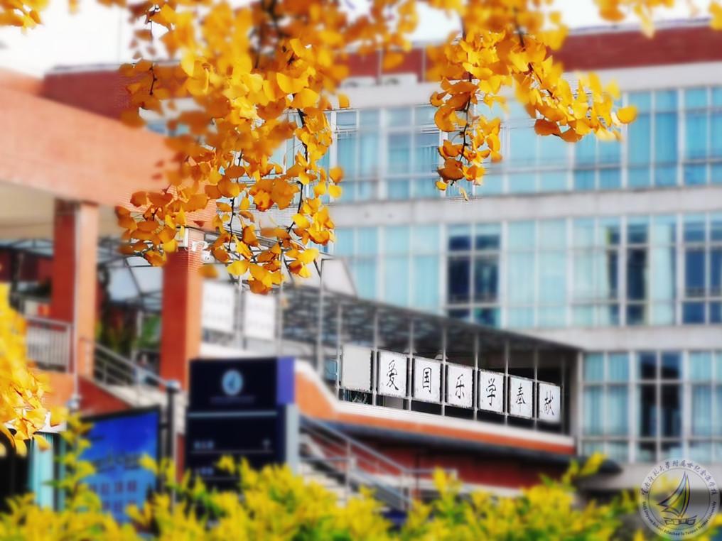 每到银杏黄时,整个校园都掩映在一片金黄色中。微风吹过,有成片的 枯叶在空中起舞,落下后便厚厚铺满房顶、小巷……