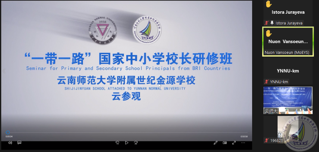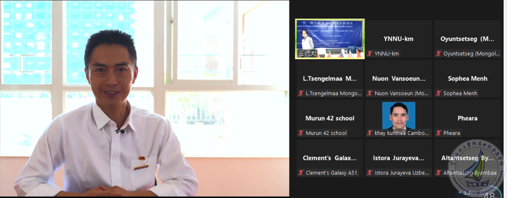 2021年10月到11月期间,由中国商务部主办,云南师范大学举办,具体由国际汉语教育学院实施的对外援助培训项目《“一带一路”国家中小学校长研修班》通过提前到我校进行录制的形式,在线上对我校进行了参观。