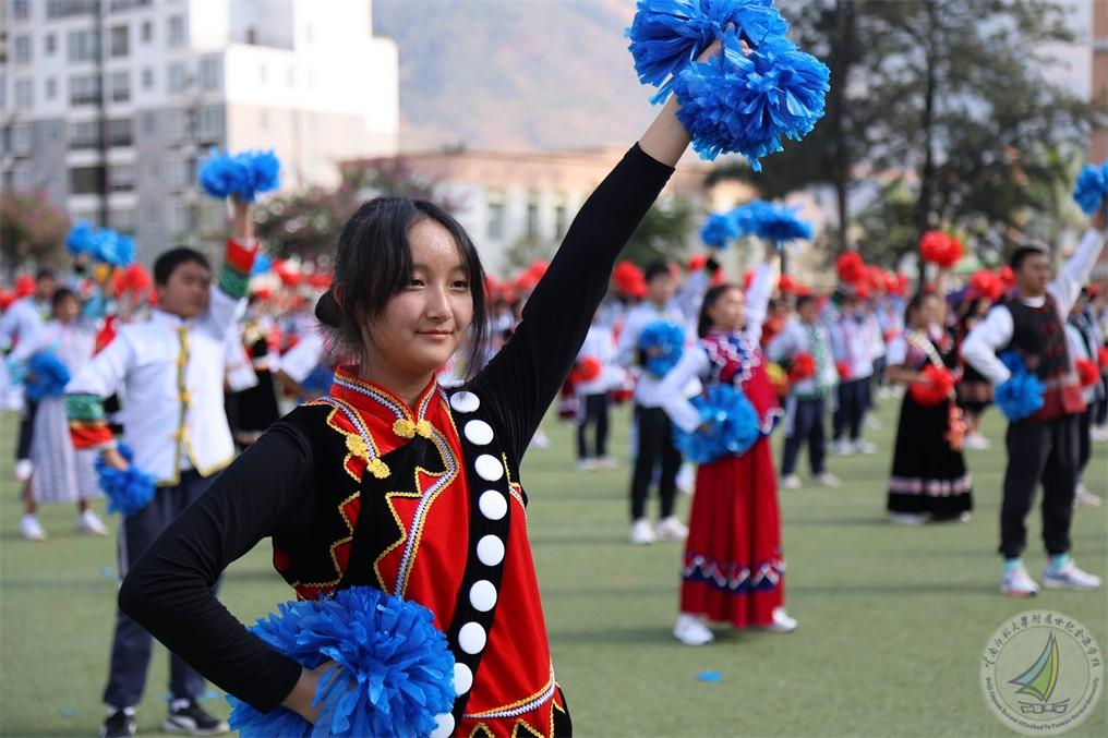 12月29日下午,在怒江州民族中学开展了第六十三届运动会开幕式,时尚阳光、充满青春气息的啦啦操展示璀璨绽放。初中方阵的1000多名怒江宝宝身着多彩民族服装,整齐的队形,矫健的身姿,自信的微笑展示了边疆少年阳光健康、团结向上的精神风貌!啦啦操文化的“感召力、影响力、凝聚力、团队、时尚、活力、自信、欢乐”已经在怒江宝宝的心里生根发芽!戴花持酒祝东风,千万莫匆匆!