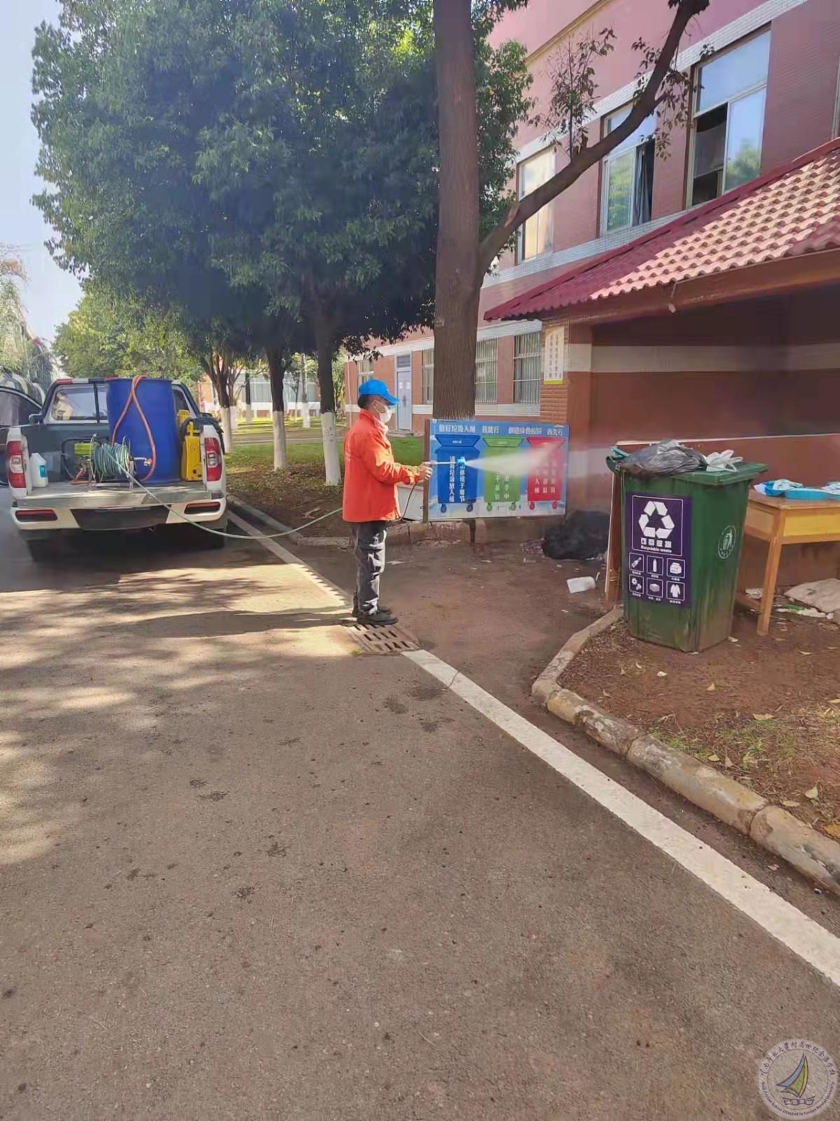 后勤保障中心处对学校供电、供水设备和校园公共环境进行巡视检修。确保公共环境卫生干净整洁,分别对楼道、卫生间进行大扫除,对校园花草树木完成了农药喷洒,对校园各处进行消毒,进行饮水机清洗消毒等工作。对于发现的问题、存在的隐患,后勤保障中心及时安排工作人员进行维修整改,为返校师生提供安全舒适的校园环境。