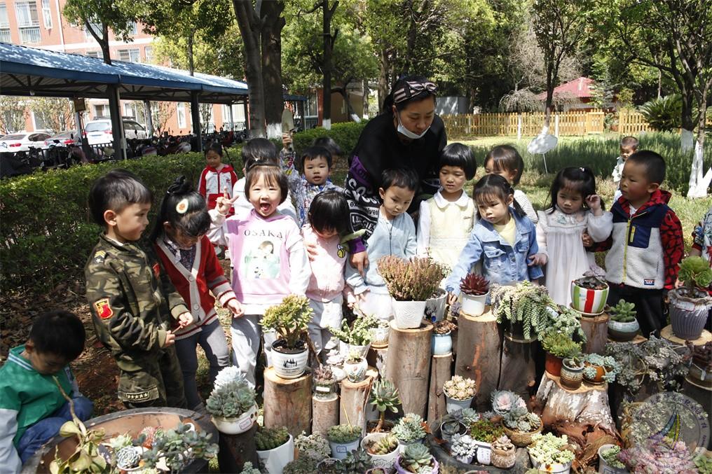 幼儿园的老师组织小朋友们在基地里种植了各种各样的多肉植物,成为进入基地的第一道风景。小朋友们在基地里尽情地看自然、听自然、嗅自然、摸自然,充分释放幼儿的天性。通过观察果树、蔬菜、花卉,给多肉浇水,画多肉,用彩泥创作多肉植物等活动,感受了劳动的快乐和大自然的美丽。
