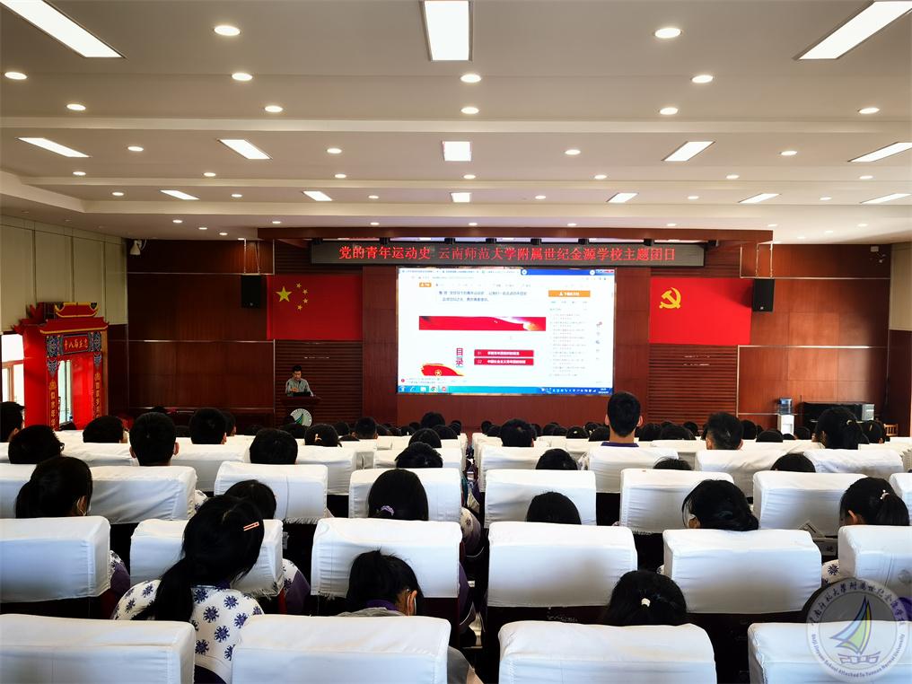 党的青年运动史—云南师范大学附属世纪金源学校主题团日,4月24日在报告厅进行,学校团委副书记卢雄伟主持培训,中学段413名团员参会。