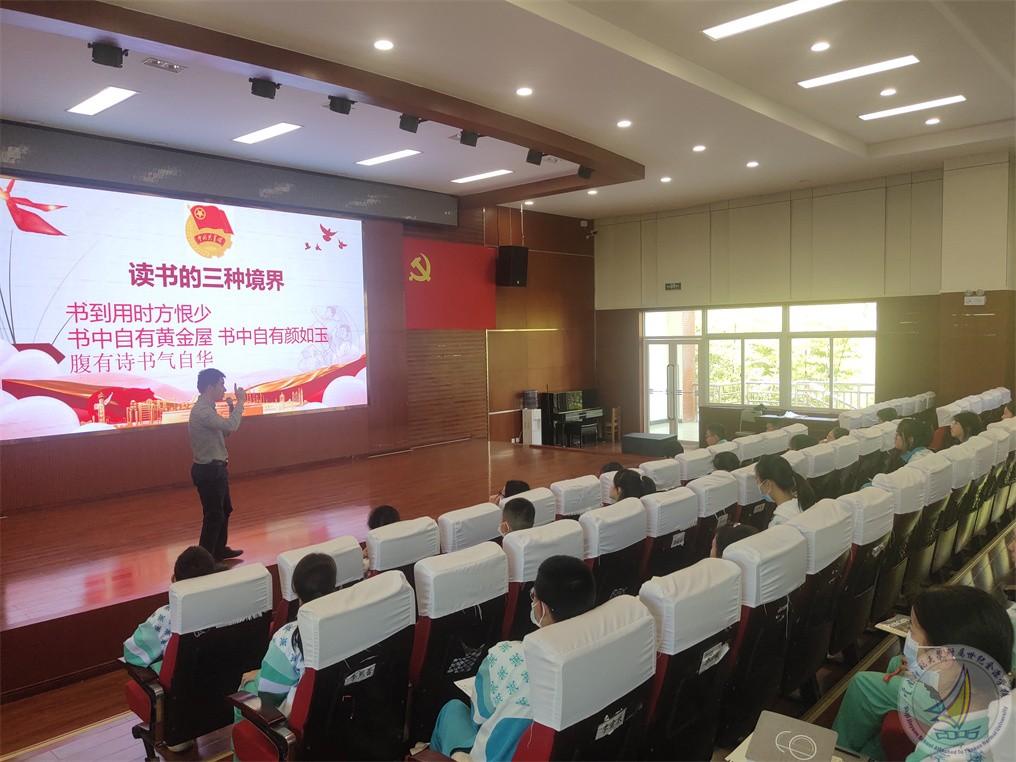 卢老师谈到读书的三种境界:书到用时方恨少,书中自有黄金屋,书中自有颜如玉,腹有诗书气自华。从勤学、明辨、笃行三个方面,要求同学们多读书,读好书。。