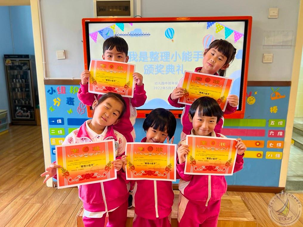 活动分为三个部分:首先,宝贝们在老师的带领下了解了抽屉的结构,并尝试整理了自己的小抽屉,之后孩子们还比赛整理了书包,为步入大班培养了良好的习惯。接下来,孩子们又学习了整理被褥、叠被子的好方法:幼儿一起边念儿歌边完成叠被子,教师们也及时指导,帮助幼儿一起整理。最后,各班针对孩子们的表现评选出“整理小能手”并颁发奖状。