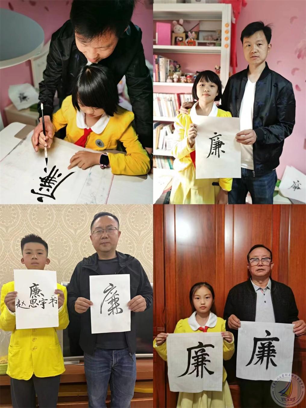 五年级孩子与长辈共写“廉”字,倡导各家庭立廉洁家规,既传承优秀家风文化,又富有时代特征、家庭特色,使之成为指导每位家庭成员和子孙后代修身齐家、健康成长的“传家宝”,形成廉洁的家庭氛围。