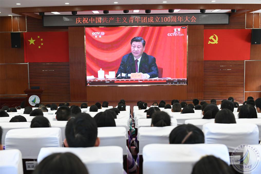 在收看过程中,全体师生聚精会神、认真聆听、专心记录习近平总书记的重要讲话。大家一致认为,习近平总书记的重要讲话,全面回顾了100年来共青团坚定不移听党话、跟党走的青春历程,充分肯定了共青团在党的领导下,团结带领一代代团员青年为实现中华民族伟大复兴中国梦所作出的重要贡献,深刻阐明了共青团和青年工作的历史经验,对当代青年寄予殷切期望,对做好新时代共青团工作提出明确要求,饱含着党中央对青年一代的亲切关怀和对共青团事业的高度重视,具有很强的政治性、思想性、战略性、指导性,接下来将认真组织学习领会,深入贯彻落实。