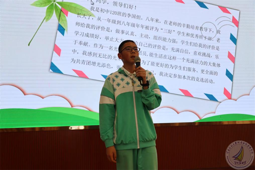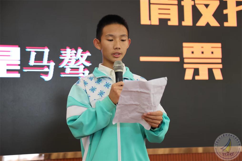省级“三好学生”、“优秀学生干部”不仅要具有优异的学习成绩,同时要有较强的责任意识,热心班级工作,积极组织开展各项活动,具有一定的组织、管理和协调能力;有较强的服务意识,热情为同学服务,在同学中有较高的认可度,起到先锋模范示范引领作用;有较强的工作能力和突出的工作业绩;本次竞选初二年级共10位优秀学生代表发言。