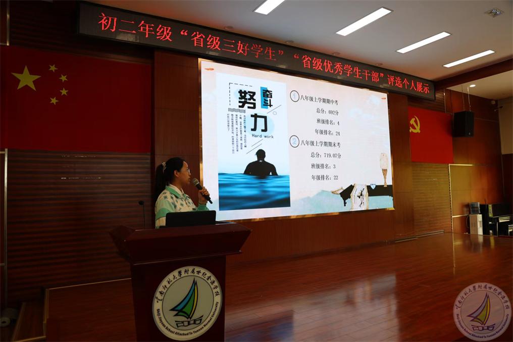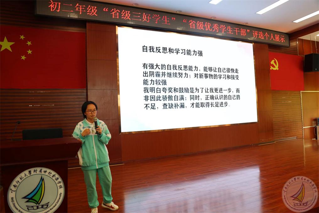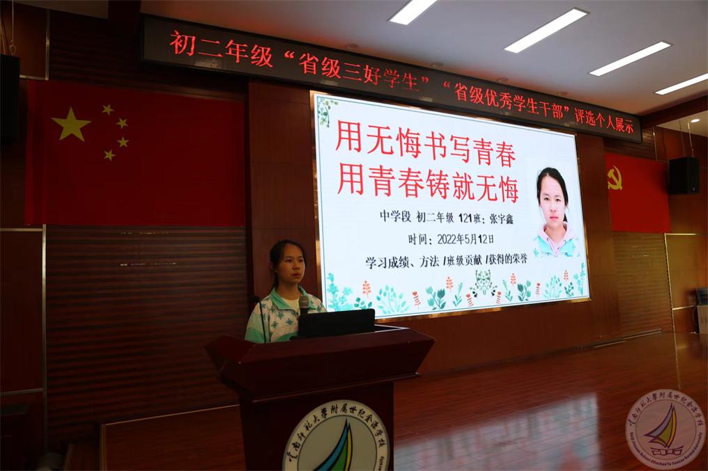 为全面落实立德树人根本任务,培养德智体美劳全面发展的社会主义建设者和接班人,根据上级文件要求,5月12日大家欢聚一堂开展2022年初二年级省级“三好学生”、“优秀学生干部”评选之个人展示。