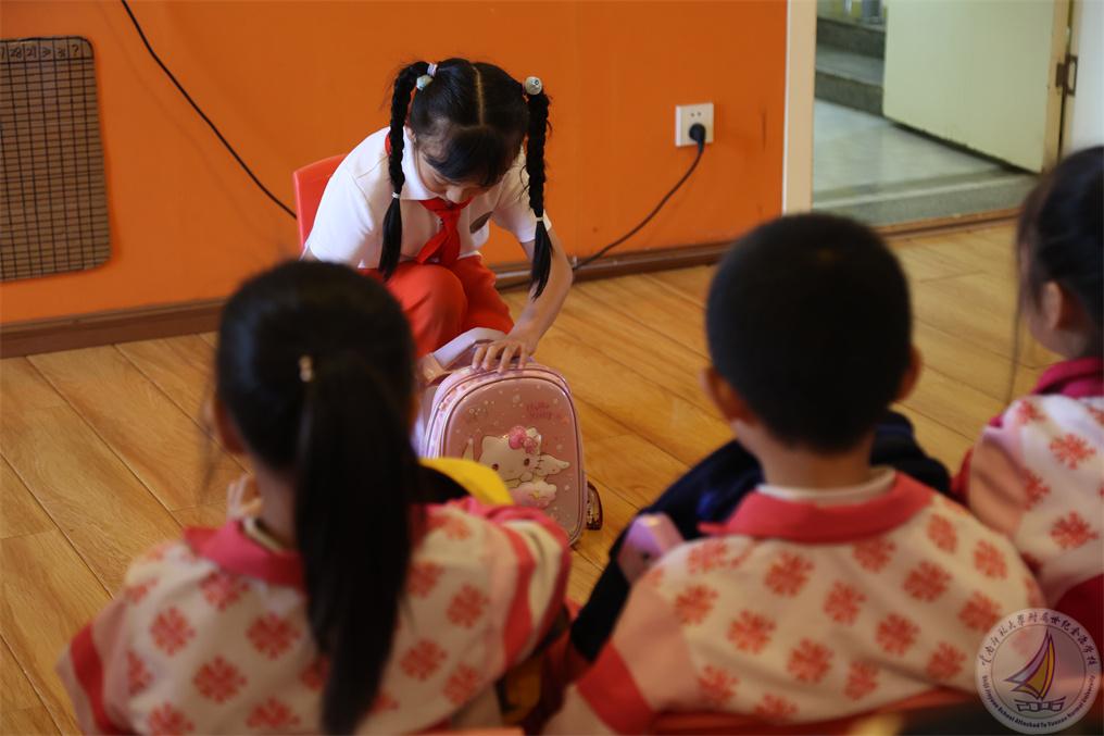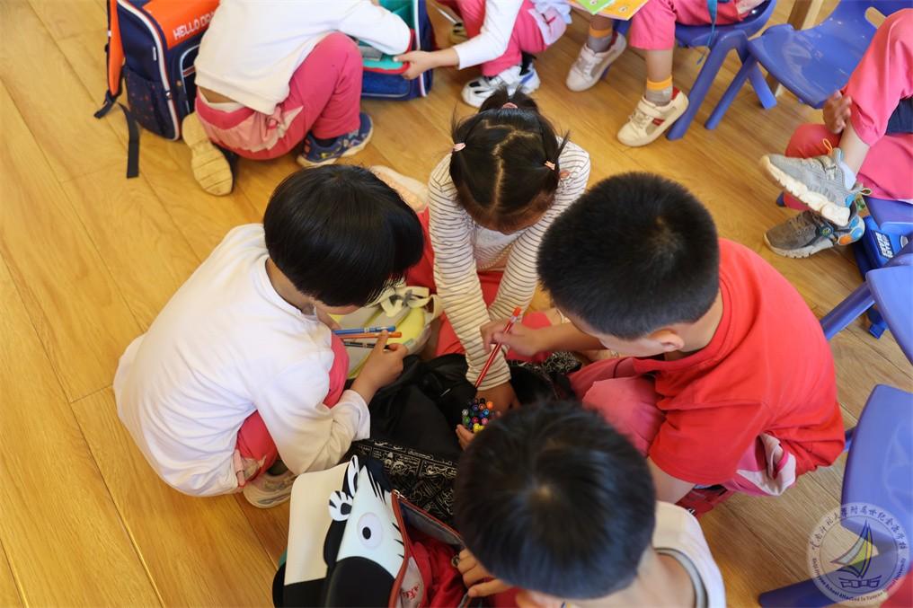 大班的小朋友们早早准备了自己上小学的小书包,里面放了自己认为应该放的东西,学长们认真地检查每个弟弟妹妹的书包,告诉他们书包里该放什么,怎样整理小书包。