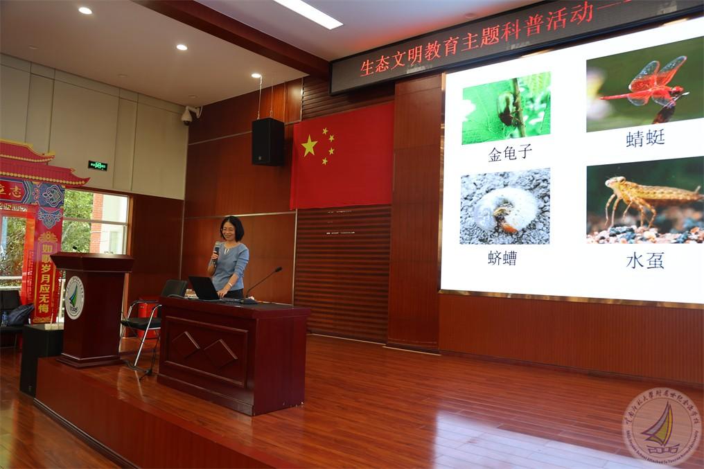 云南农业大学和淑琪副教授为同学们进行了《多彩的昆虫世界》主题讲座。讲座引人入胜,同学们听得如痴如醉。和教授向孩子们介绍了一些昆虫的生物特点及生活习性,通过一张张精彩有趣的图片,深入浅出地帮助孩子们认识有趣的昆虫知识。在报告厅中,同学们认真记录,积极发言,有疑惑的地方及时与老师交流,不少同学还得到了老师的奖品——昆虫照片,满满的成就感洋溢在脸上!