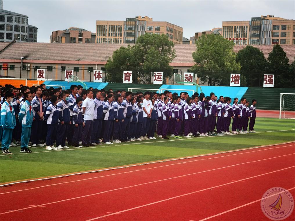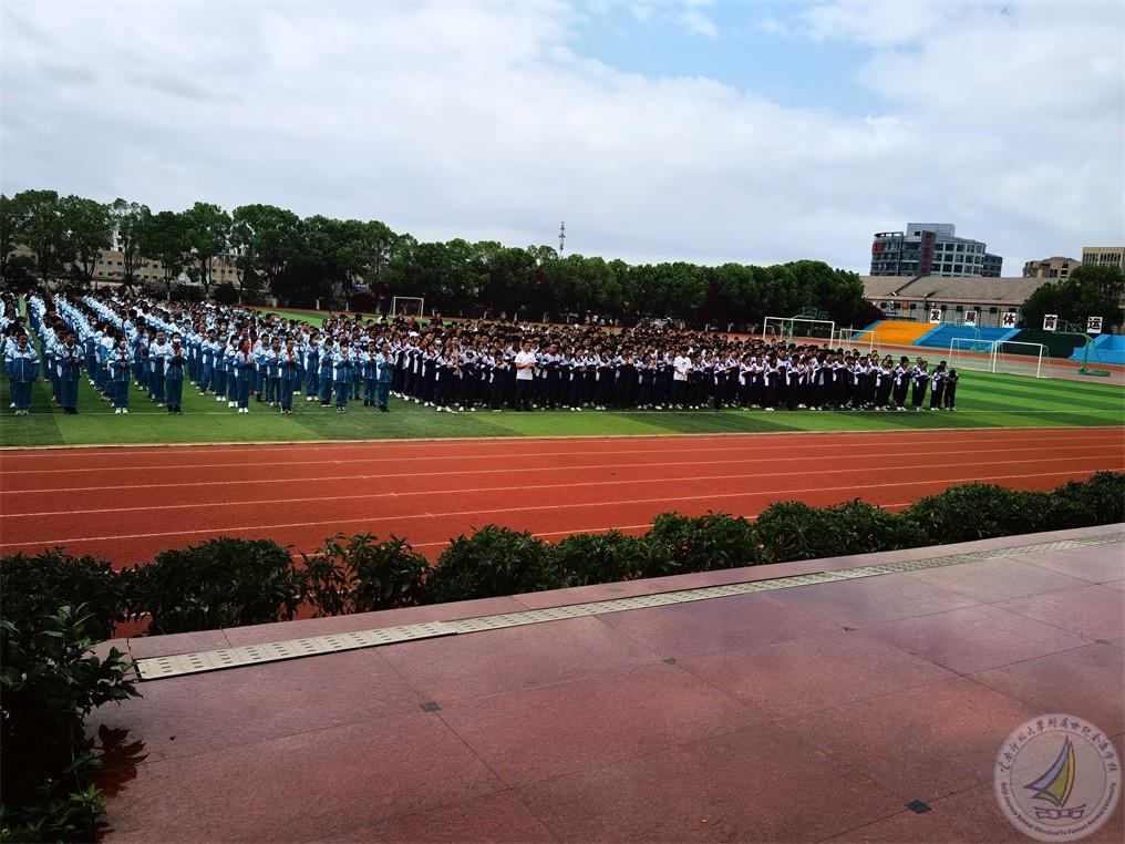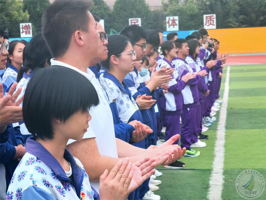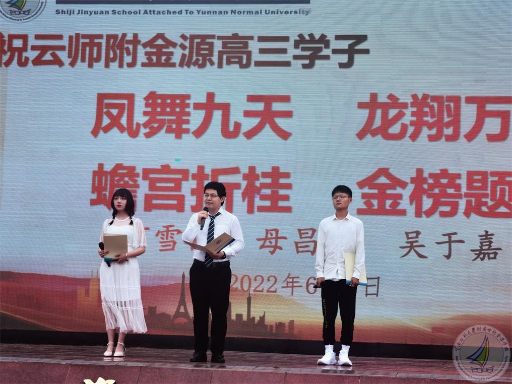 2022年6月1日上午,在高考即将来临之际,中学段师生在学校田径场,为高三年级的学生加油鼓劲。学校团委副书记卢雄伟主持活动,何雪民老师和母昌奖、吴于嘉两位同学带来朗诵。
