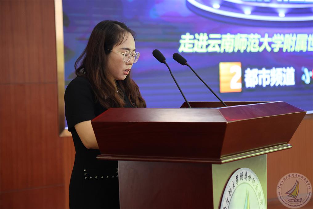 我校鲍学良副校长说,我校与云南广电携手合作,成为第一个“云南广播电视台小主播研习学校”,第一个“《小口马牙》小主播站”,这两个第一,激励我校师生走出校园、打开思维的墙,全面提高师生的综合素质,也将给孩子们开一扇窗,仰望星空脚踏实地,希望今天的授牌能在金源开个好头,在校园内外大放异彩。