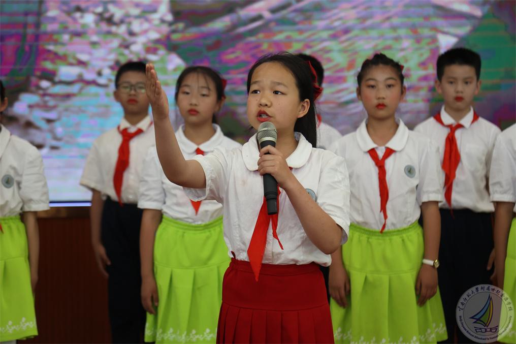 来自五年级的王瑞芝同学代表全体学生承诺在“小口马牙”小主播站这个舞台上,努力学习、勇于实践、提高自己的全面素质,以积极的心态,去参加“小口马牙”小主播站的研习活动,珍惜机会,走向新的明天!