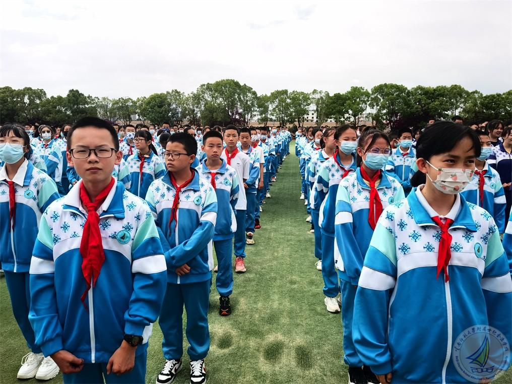 2022年6月1日上午,在学校田径场举行庆祝六一活动的启动活动,学校团委副书记卢雄伟发表讲话。