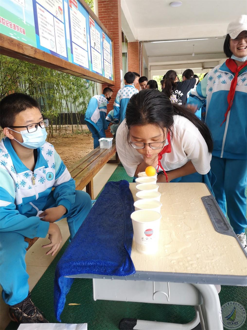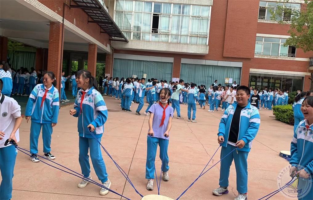 6月2日,初一年级全体师生在假山和行政楼的活动区域举行庆祝六一活动,活动有你画我猜、东南西北分得清、夹红豆、纸飞机、猜成语、跳绳接力、投迷你版篮球、趣味贴鼻子……活动丰富多彩,同学们踊跃参加,乐此不疲。